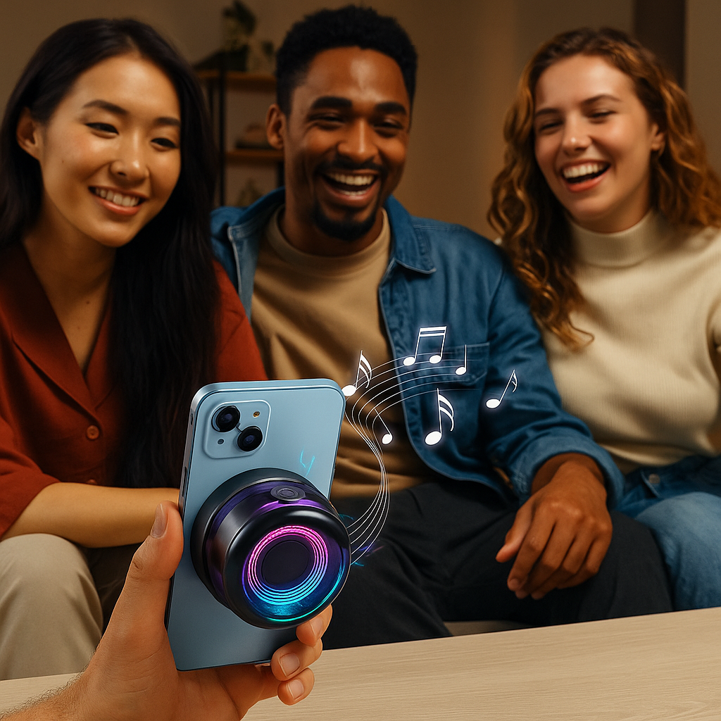Con esta bocina portátil magnética, tu música se escucha fuerte y se ve increíble.